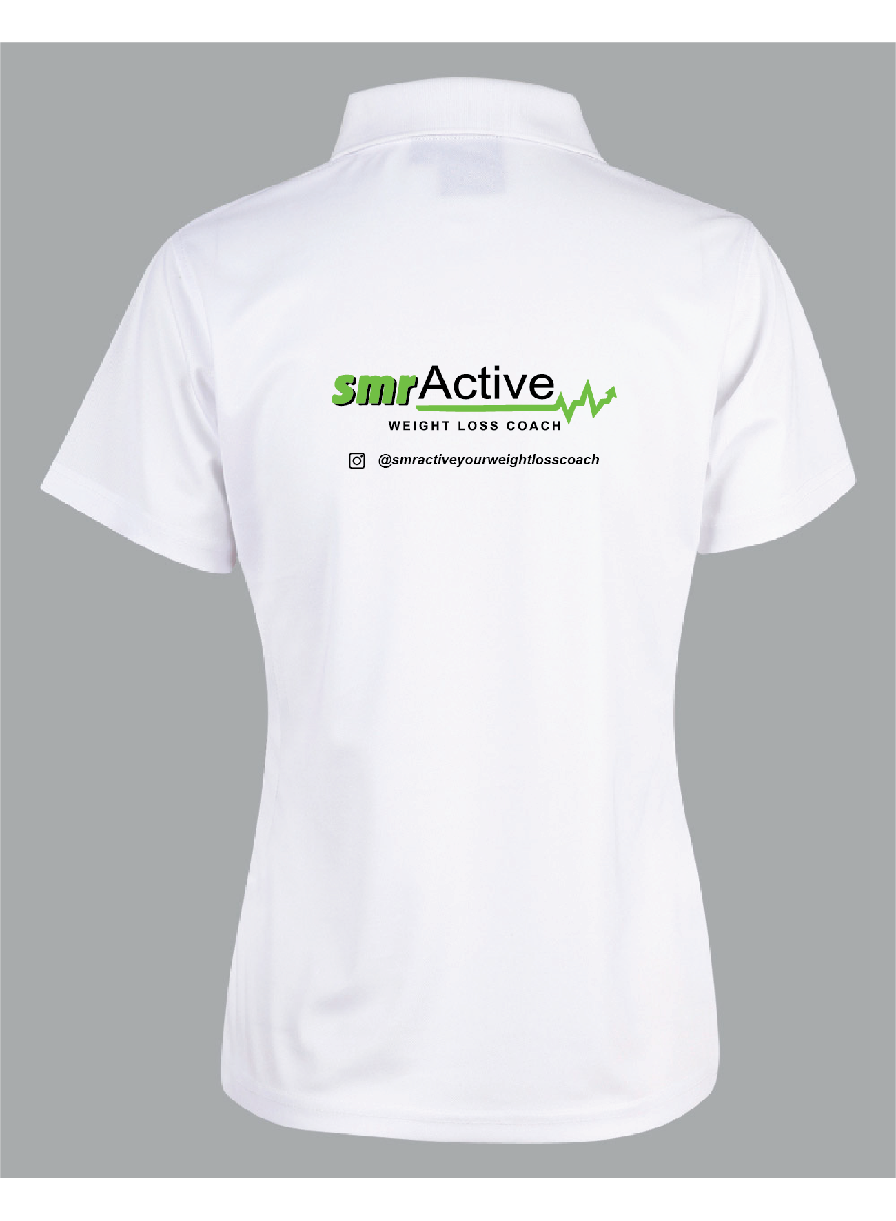 SMR Active logo (green/white), left chest and SMR Active logo (green/white) enlarged on back.