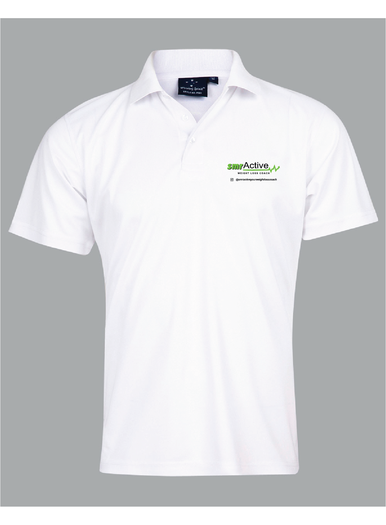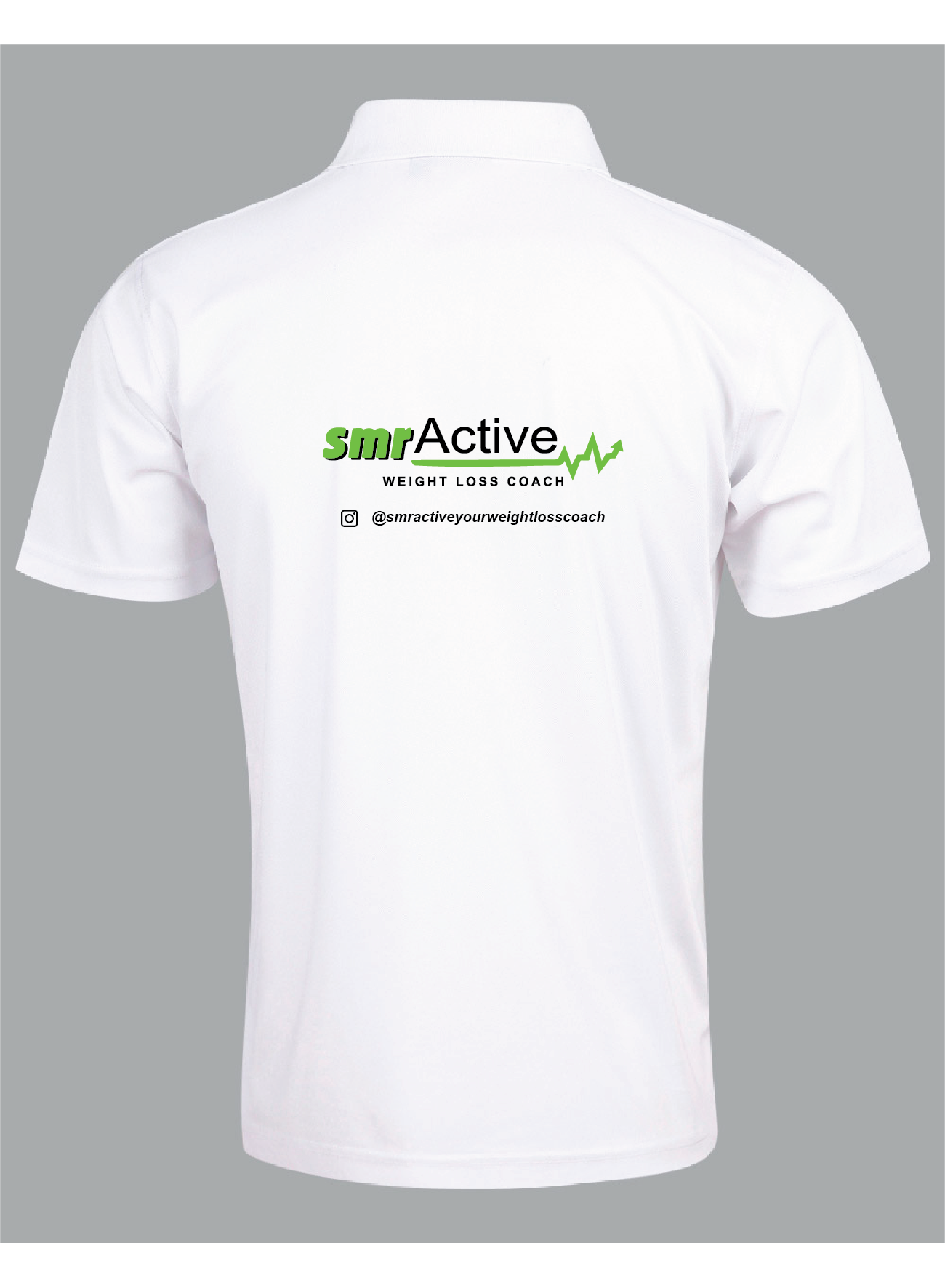 SMR Active logo (green/white), left chest and SMR Active logo (green/white) enlarged on back.